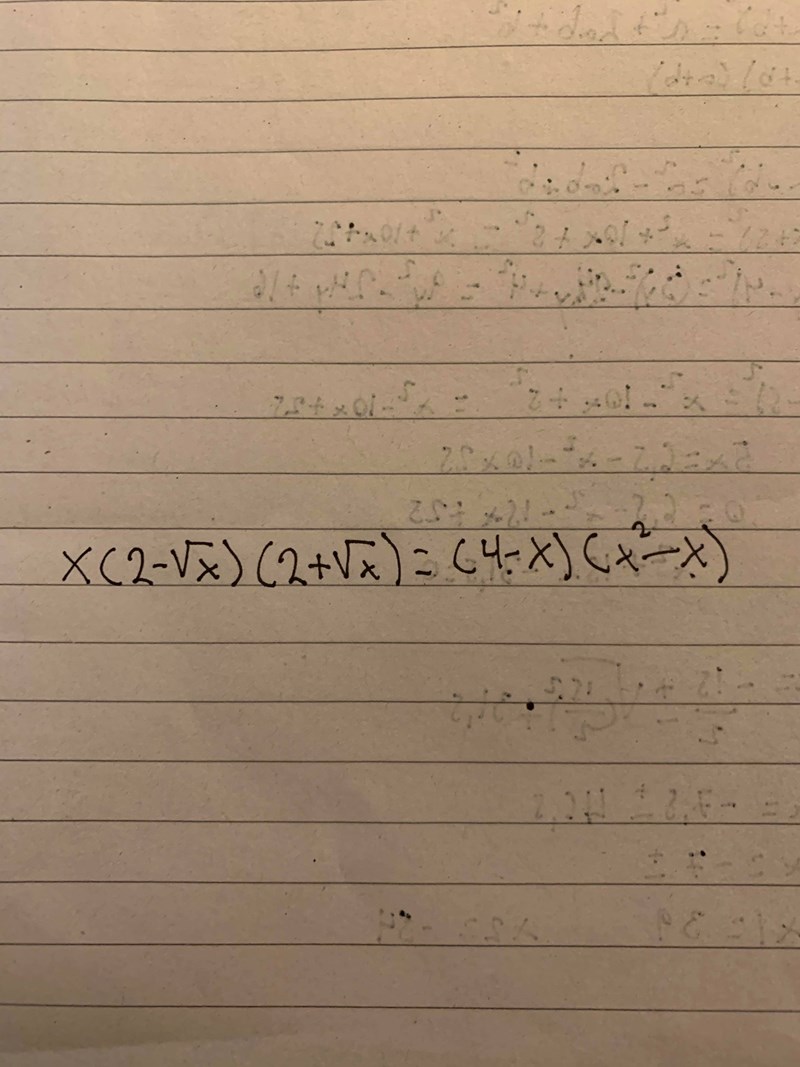 x(2-x)(2+x)=(4-x)(x2-x)x(2-\sqrt{x})(2+\sqrt{x})=(4-x)(x^2-x)