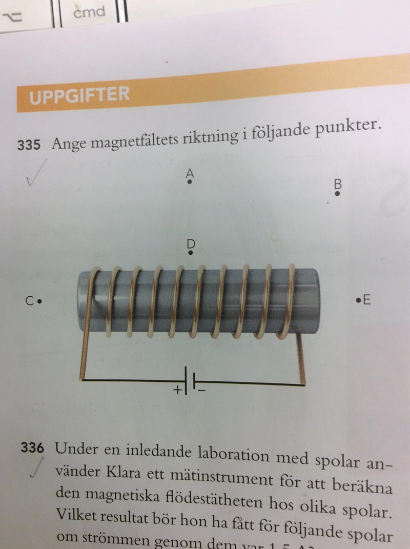 Hur kan man förstå att magnetfältets riktning är åt vänster i punkt C och E men det är åt höger punkt D och A.