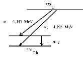 238U kan sönderfalla till 234Th genom två olika alpha-sönderfall med olika energier enligt sönderfallsschemat nedan. Bestäm våglängden på den gamma-strålning som också kan iakttas.