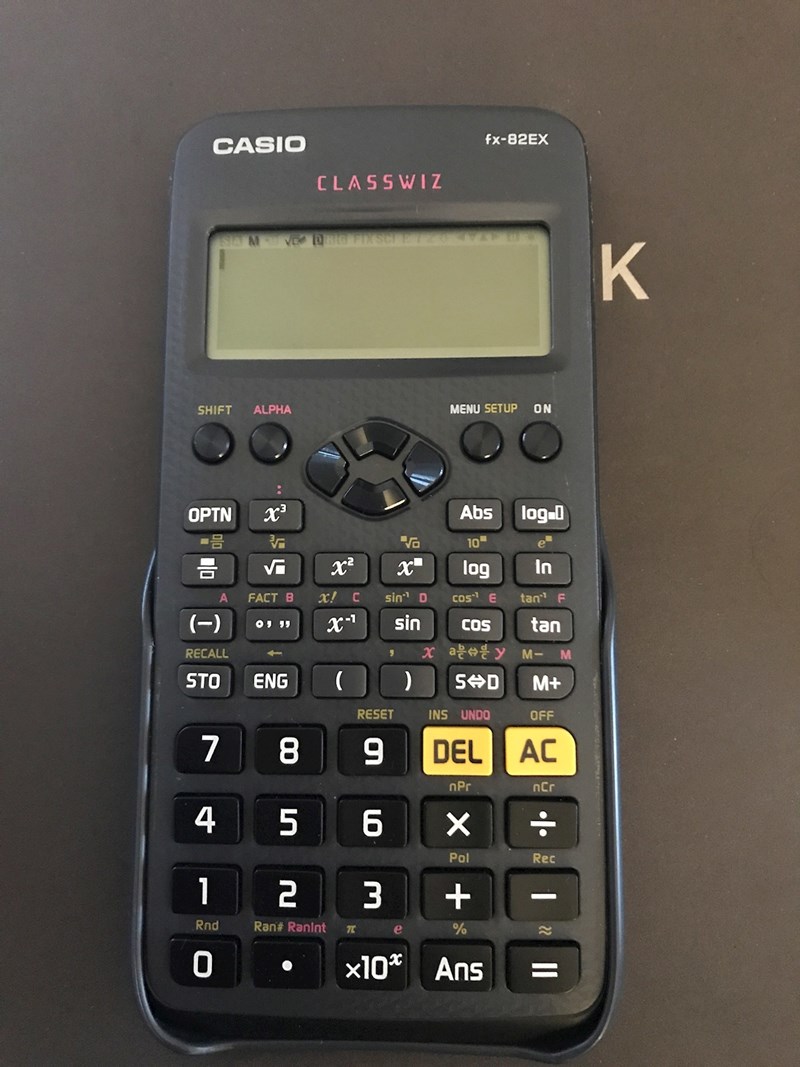 Menar du på miniräknaren? Du har en knapp längst uppe till vänster som det står SHIFT på i gul text. Tryck på den och sedan på sin ()