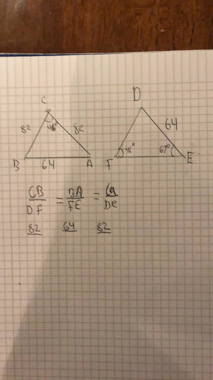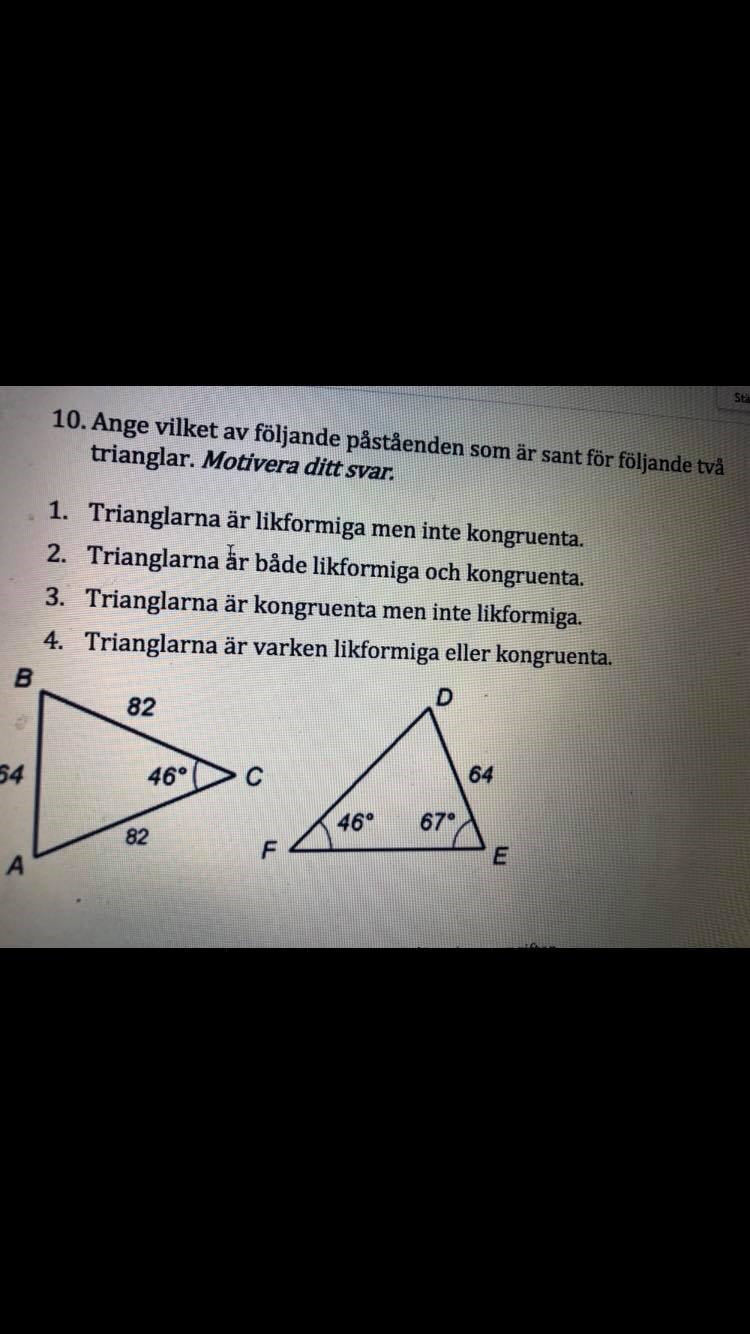 fick fram att vinklarna i båda trianglarna var detsamma. blir de att de trianglarna är kroguenta och likformiga?