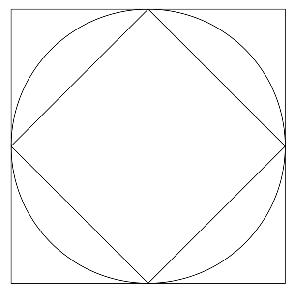 Eftersom cirkeln är inskriven i kvadraten är diagonalens längd lika med aa.