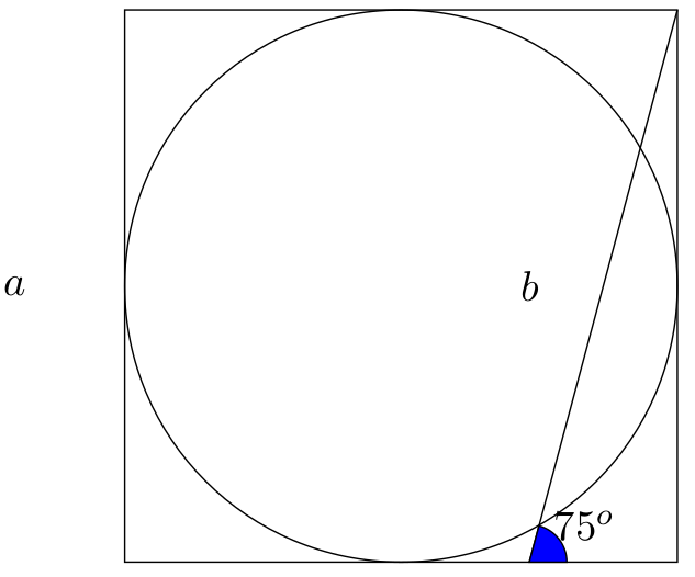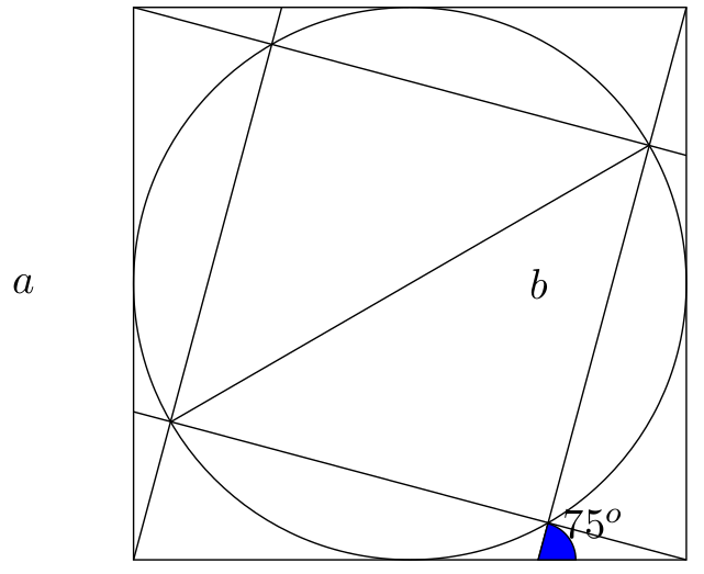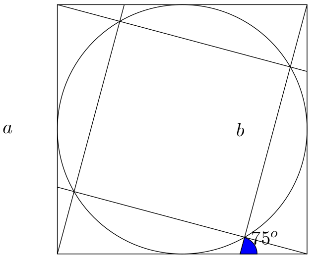 75° är av vikt och bör därmed visa att en kvadrat uppkommer. Vi kan inte bara rita ett par streck och säga "Kvadrat!". Uppgiften är inte speciellt svår med trigonometri men den är ev. lösbar med "vanlig" geometri.
