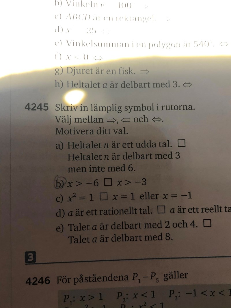 ska man tänka så här ”heltalet n är ett jämnt tal ( ) heltalet n är inte delbart med 3 men är delbart med 6”