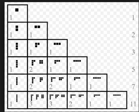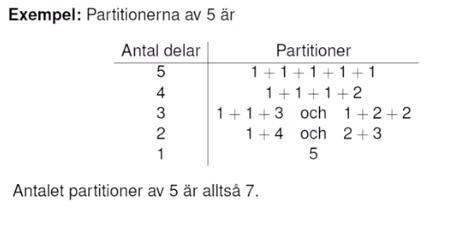 Öhm.. Jag la upp en bild på ett exemplet, och jag förstår inte exemplet. Jag fattar inte hur Antal 5 delar kan ge 1+1+1+1+1 partiioner, varför inte tex 1+2+2.. eller 3+2 mmm..