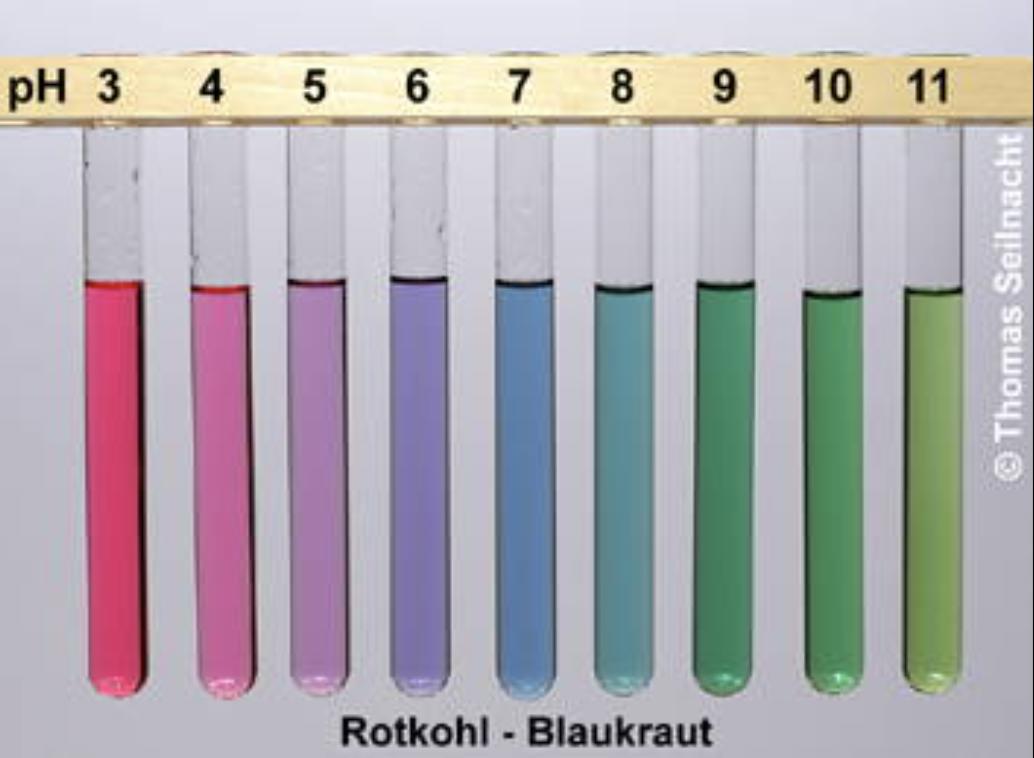 Jag kommer inte ihåg. Är rödkål röd vid syr pH och blå/lila i neutral basisk pH?
