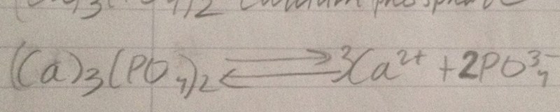 Skriv the corresponding balanserade equation som beskriver heterogenous equilibrium i saturated solution för Calcium phosphate.