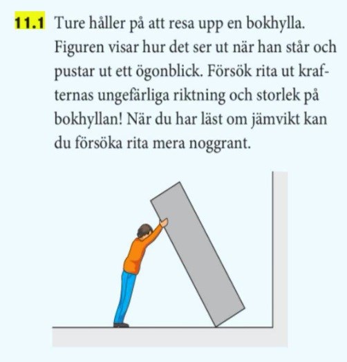 Varför tror du att bokhyllan skulle ha glidit mot Ture? Det hade den inte. Du kan prova i liten skala genom att t.ex. luta din mobiltelefon mot ett finger, så ser du att den glider iväg från fingret.