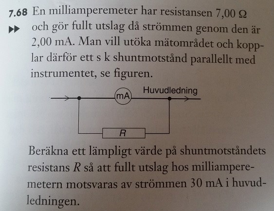 Heureka! FyB Ö&P, 8.68, En milliamperemeter har resistansen 7,0Ω..
