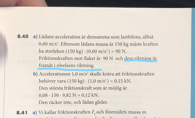 Smaragdalena skrev:Vad skulle hända med lådan när lastbilen accelererar, om det inte var någon friktion alls?