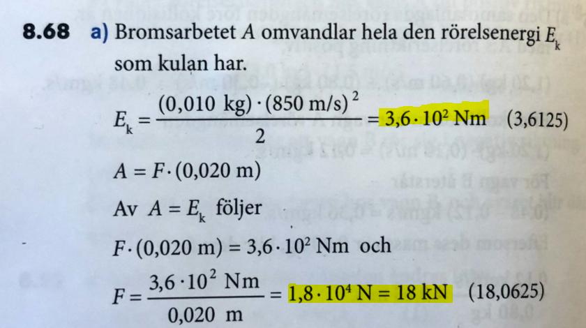 Ja tror de har missat en decimaltecken i lösningen. Kraften borde blir 180 kN inte 18 kN.