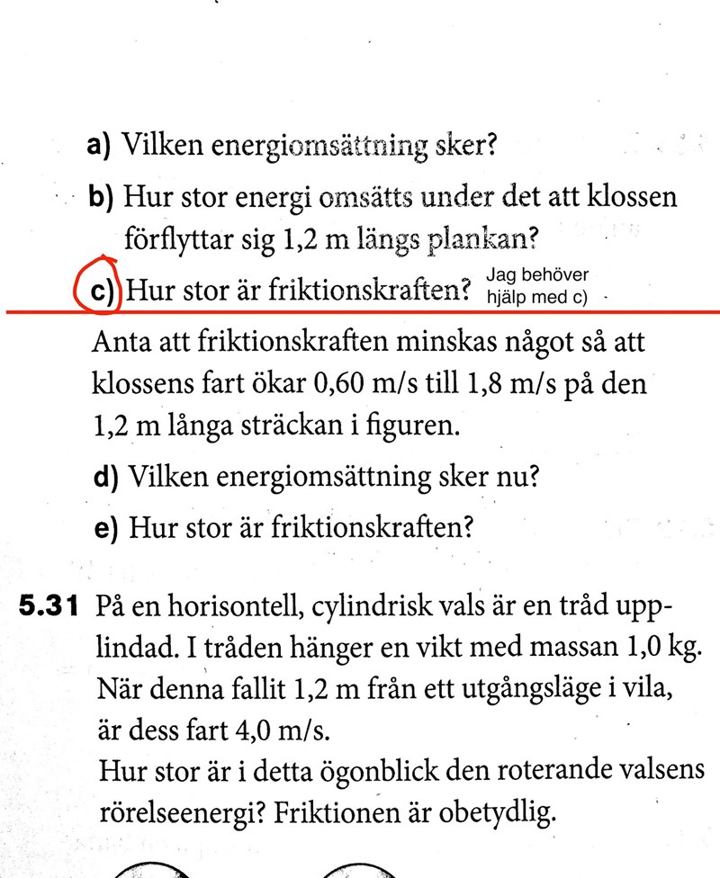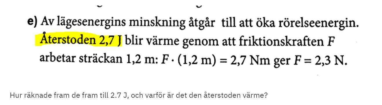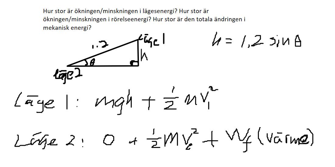 Smaragdalena skrev:Hur stor är ökningen/minskningen i lägesenergi? Hur stor är ökningen/minskningen i rörelseenergi? Hur stor är den totala ändringen i mekanisk energi?