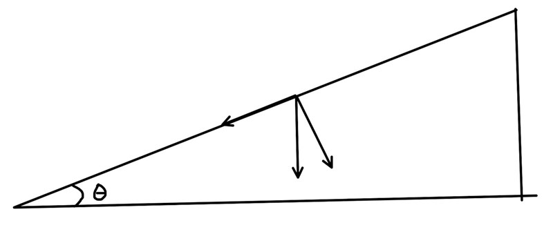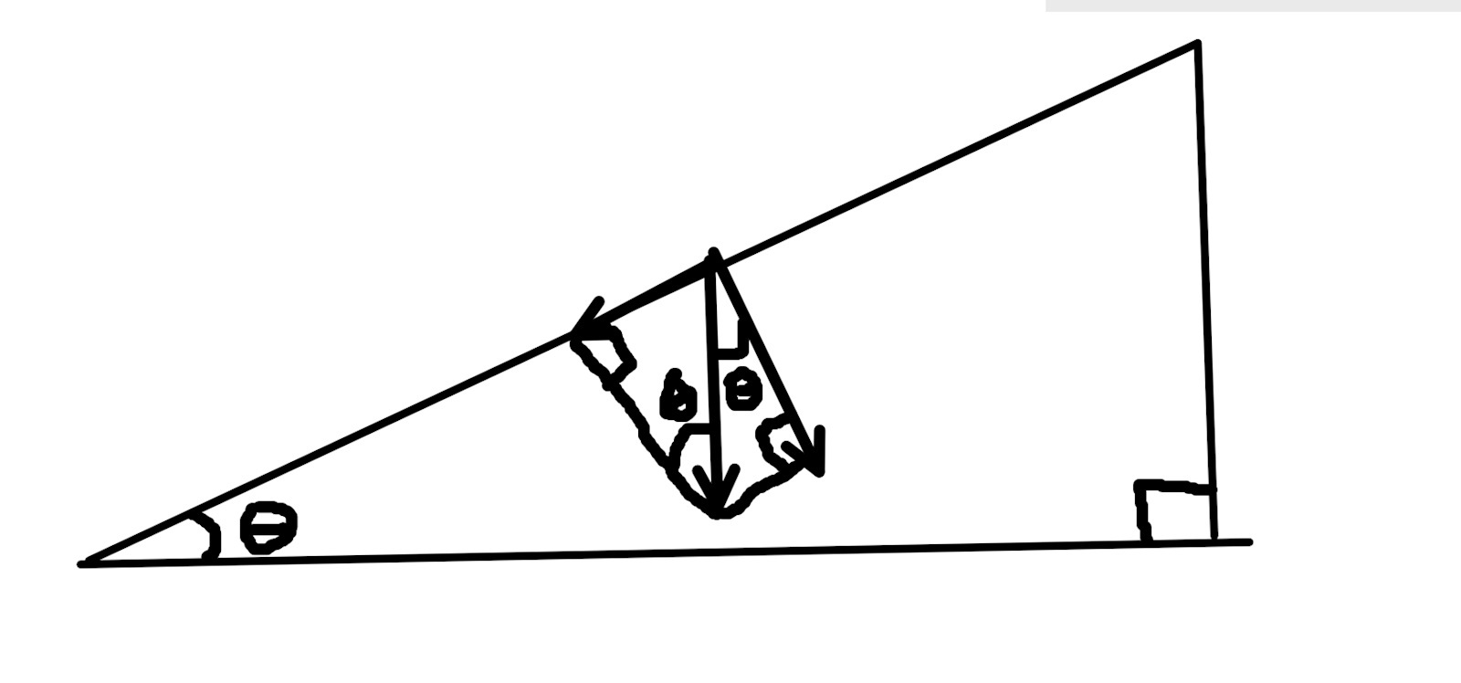 Rita ut hela rektangeln, som har mg som diagonal. Då bör du kunna se vilken vinkel som är lika sotr som backens lutning.