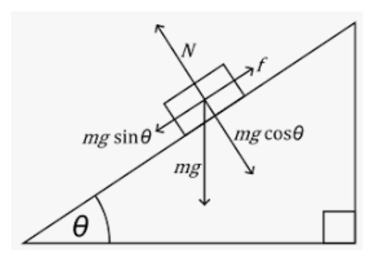I facit står det: " Friktionskraften är lika stor som tyngdkraften komposant längs plankan (kraftjämvikt)."