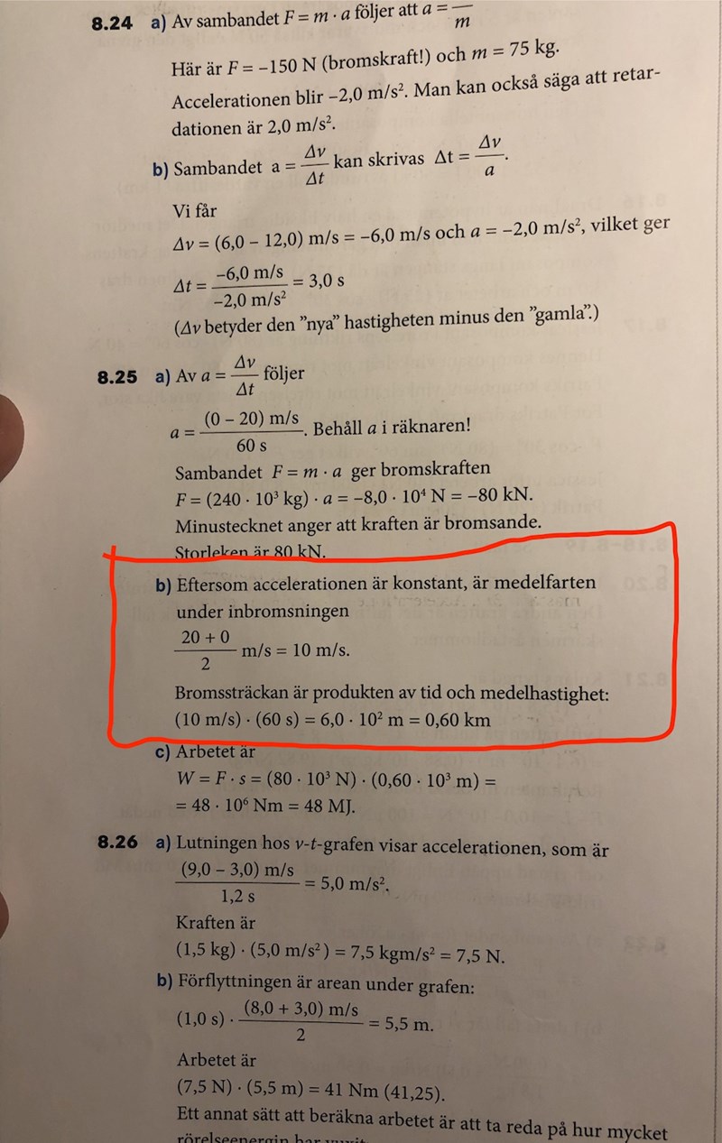 Varför behöver vi beräkna medelfarten under inbromsningen kan vi inte bara använda farten 20 m/s?