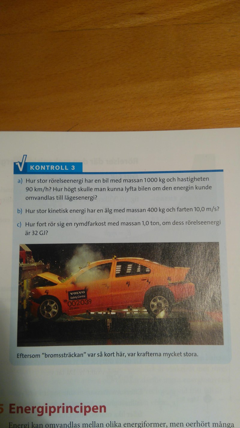 så hjälper det inte så mycket för, höjden är ju okänd, vet inte riktigt vad er det man kan göra då man ¨bara¨ har 1,0 ton och 32 GJ att gå på, och vill man lösa ut höjden som jag gjorde i uppgift a), så måste man veta hastigheten, och man få inte ut hastigheten utan att känna till höjden så nåt mer måste man göra. =)