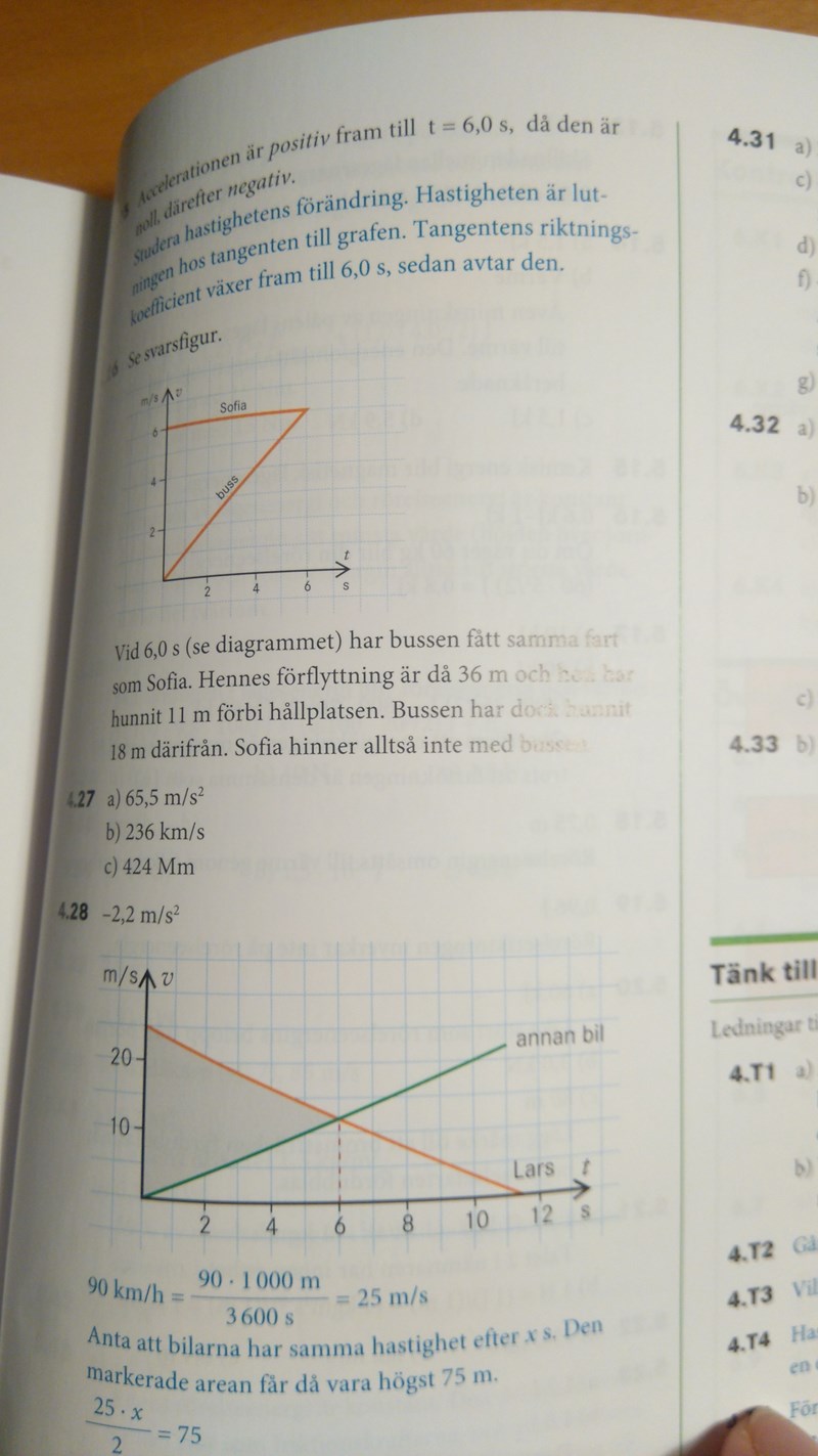 Det är väldigt logiskt att jag inte kom på det själv :D (så att säga) men hur kom de fram till att bussen har kört 18 m då hon har nått 36 m? Det var nog det som förvirrade lite. Super tack <3