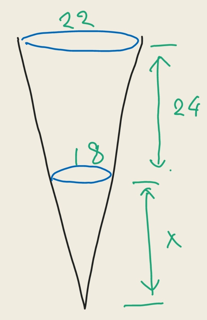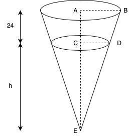 Den sökta volynen är då (Volym av kon med höjd x+24) - (Volym av kon med höjd x).