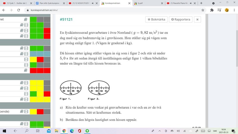 Ja, om accelerationen är riktad uppåt så visar vågen ett högre värde. Åt vilket håll går hissen i den här uppgiften?