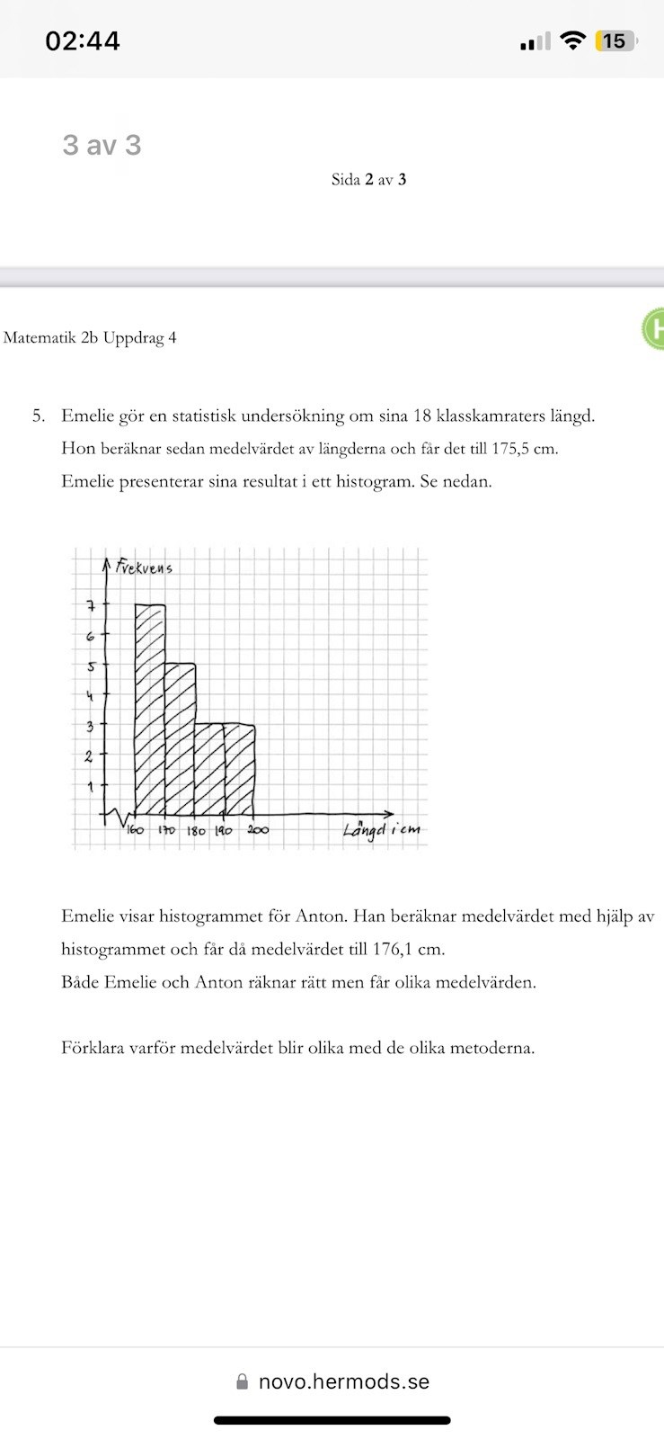 Ledtråd: Emelie använder nog inte histogrammet för att beräkna medelvärdet.
