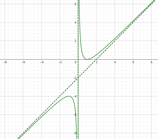 Hej jag förstår inte varför y=1 inte är en asymptot vad är det som är fel i min lösning ?