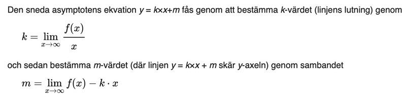 Då närmar sig funktionen den räta linjen y=x, vilket också är den sneda asymptoten