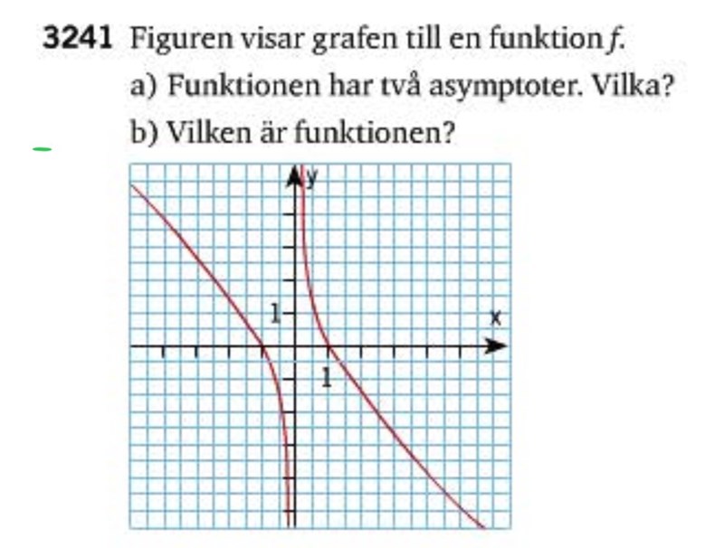 Hej, i denna uppgift ska man hitta 2 asymptoter för figuren. Den ena asymptoten är y-axeln vilket jag förstår, men det andra asymptoten ska vara y=-x. Jag förstår inte riktigt varför?