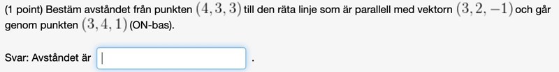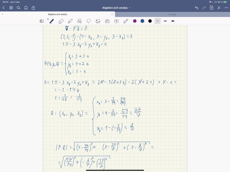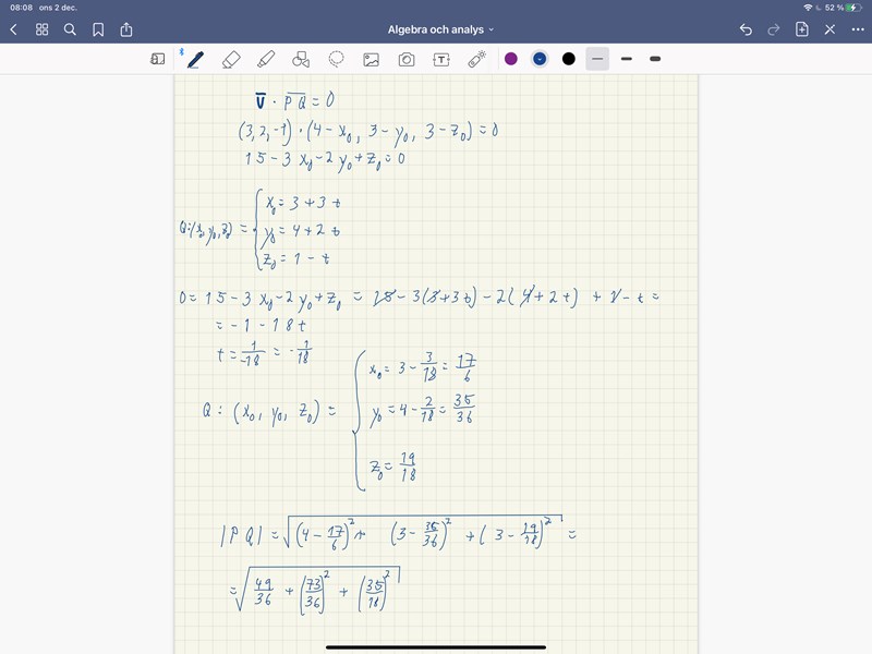 Har försökt lösa den genom att hitta punkten Q på linjen som ligger närmast P och därefter beräkna avståndet.