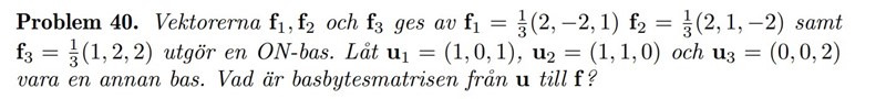 Hitta basbytesmatrisen som byter från standardbasen till basen f : .