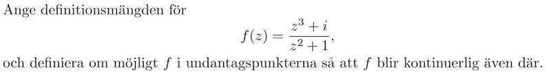 Jag har hittat definitionsmängden, som är att funktionen är definerad överrallt förutom när z = i och när z =-i.