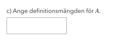 Förstår inte riktigt vad jag ska använda för metod... Hur börjar jag tänka? Har fastnat på fler uppgifter, där jag precis som här hittar alla svar förutom definitionsmängden