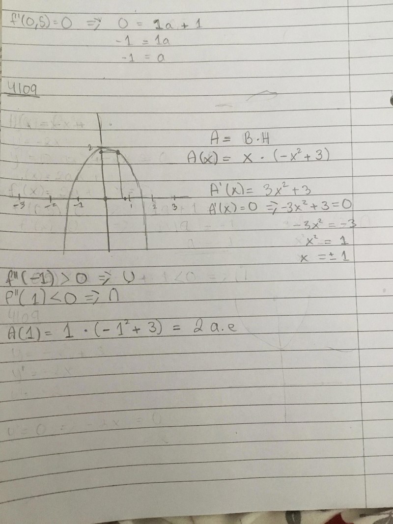 En rektangel ligger i första kvadranten med ett hörn i origo, ett på x-axeln ett på y-axeln och det fjärde hörnet på kurvan y = -x^2 + 3. Bestäm rektangelns maximala area.