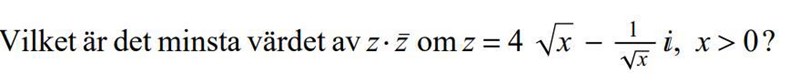 Bra poäng! I den meningen är det ju komplext. Jag tycker dock det kändes rätt naturligt att söka minimum till en vanlig reell funktion, i det läget anser jag inte att en fiktiv term på bidrar.