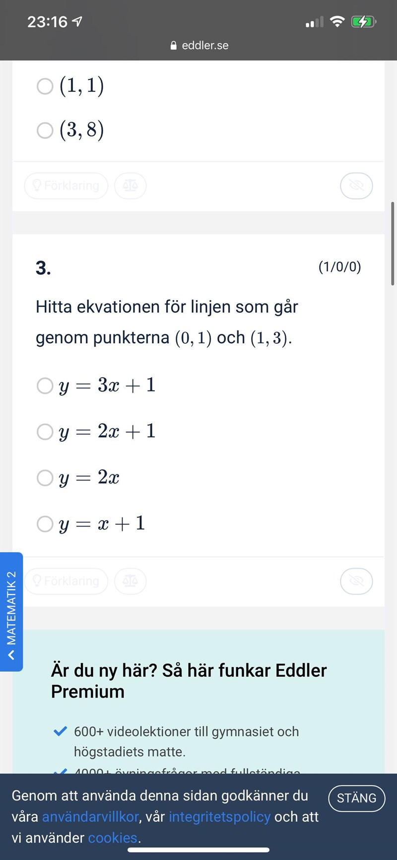 Löser jag denna genom att sätt in båda pubkterna i ekvationen? Och den ekvation där båda funkar och ”går” HL = VL är den som är korrekt? vill inte lösa uppgiften vill bara veta hur man ska tänka generellt om jag får en sån här uppgift.