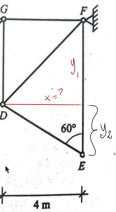 Jag behöver momentet för att slutföra alla externa krafter, FE är längre än 4 meter men jag vet inte hur jag kan hitta denna längd, jag skulle gissa att det har med vinkeln 60 att göra men hittar ingen lösning. Tack!