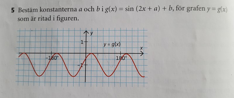Har ritat in g(x)=sin(2x+30)-1 i graf räknaren. Det visar en graf som är exakt som den på bilden. Om jag ritar in sin(2x-60)-1 blir det en helt annan förskjutning än vad bilden visar. Facit har fel denna gång :)