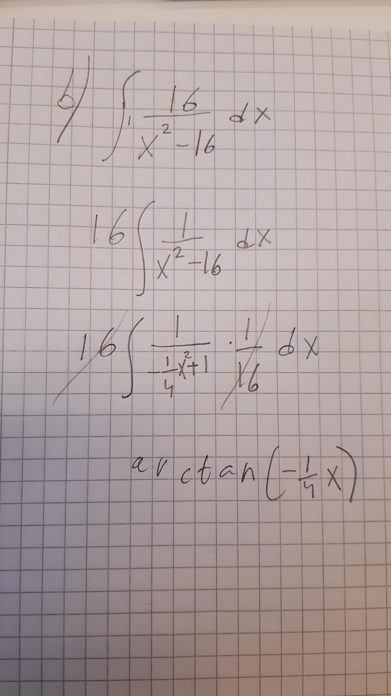 Nämnaren blir (x+4)(x-4), partialbråksuppdela sedan.