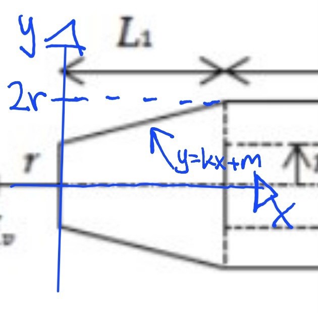 Hejsan! Jag har en stympad kon som jag behöver hitta r(x) för, dvs hur radien ändras längs konens längd.