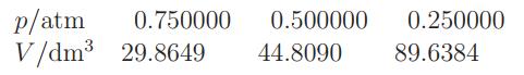 Följande data avseende tryck och volym har uppmätts för 1.000 mol syrgas vid 0.00◦C. Utnyttja data för att bestämma ett värde på gaskonstanten, R.