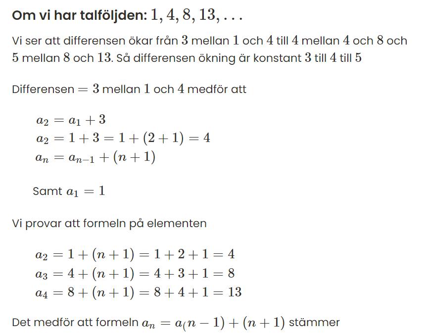 Men om jag vill räkna ut värdet a9 då måste jag känna till a8! Och hur räknar man ut a52?