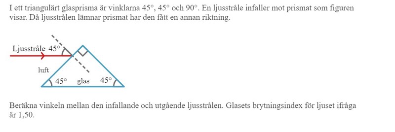 Det här verkar vara samma fråga: https://www.pluggakuten.se/trad/i-ett-triangulart-glasprisma-ar-vinklarna-45-45-och-90/