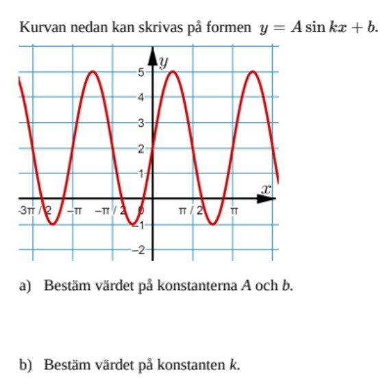 dessa svaren är rätt i facit dock vet jag inte hur jag ska få fram konstanten k. Jag vet att man kan få den genom 360/k = perioden
