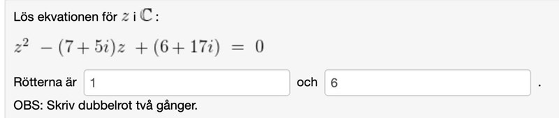 Oj, bortsåg helt från pq-formeln då jag blev låst på att den skulle lösas på annat sätt iom att den är komplex.