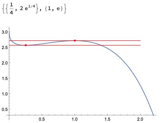 Jag ritar upp funktionen f(x)=(ekvationen ovan) som en graf ser jag att den har ett minimum för f(x) vid c:a 2.5 och ett maximum vid c:a 2.7. Kan man tänka sig att svaret till slut blir att det är en exakt lösning för a>2,7 och för a<2,5. För a mellan 2.7 och 2.5 finns det tre värden på x som leder till samma värde på a.