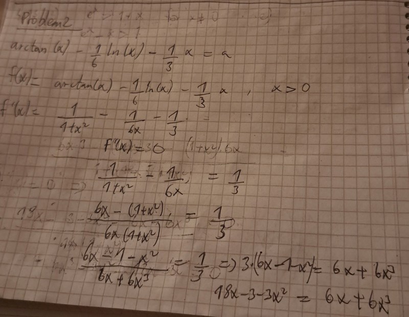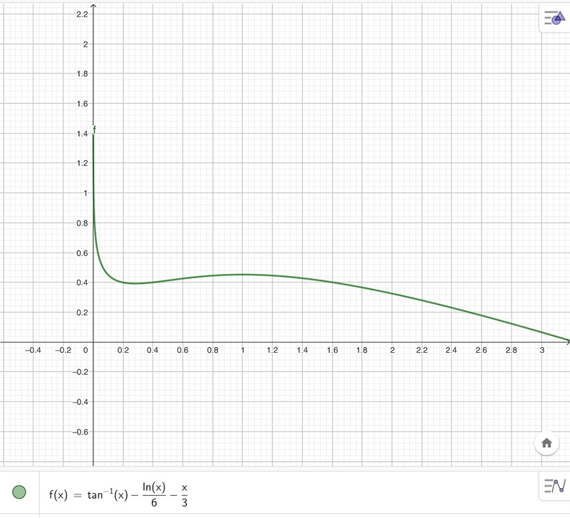 PATENTERAMERA skrev:Funktionen är f(x) = arctanx - (1/6)lnx - (1/3)x.