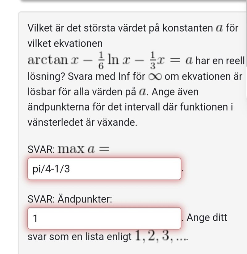 Är största värde pi/4-1/3? Aa jo du har rätt x=-3+sqrt(17)/4 är min