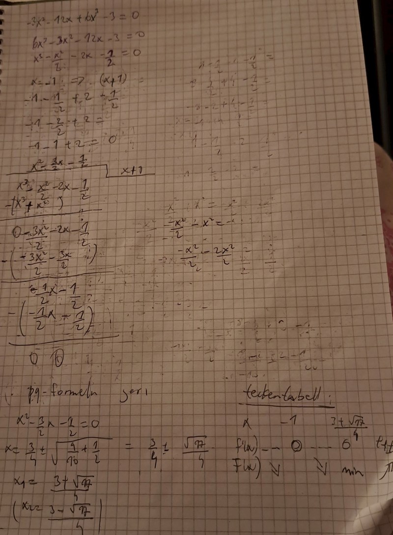 Jag gjorde också polynomdivision och fick ett nollställe (–3+sqr17)/4