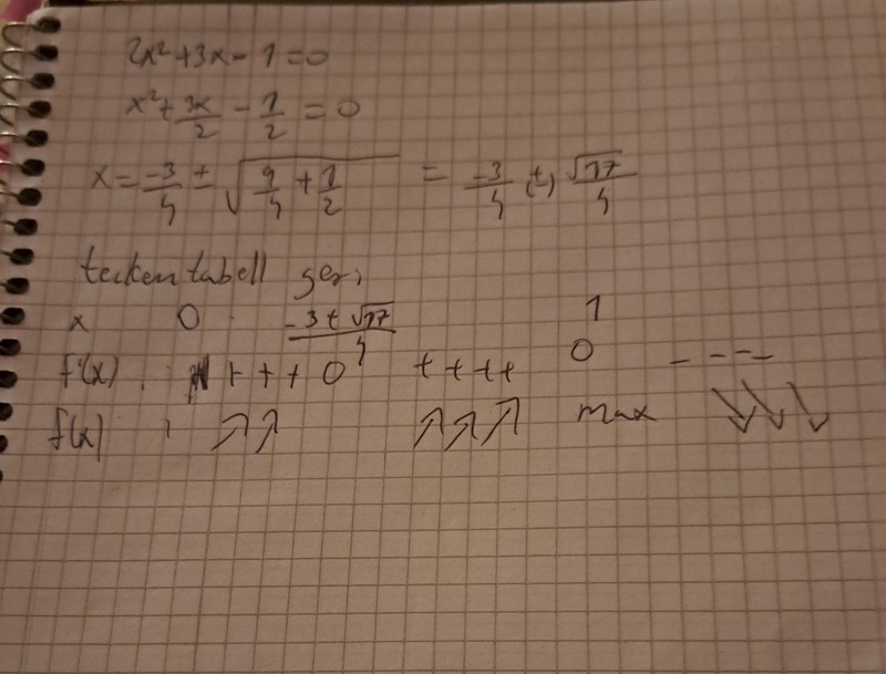 Marilyn skrev:Just det, (–3+sqr17)/4 ligger mellan 0 och 1. Men det är ingen dubbelrot så tecknet växlar där.