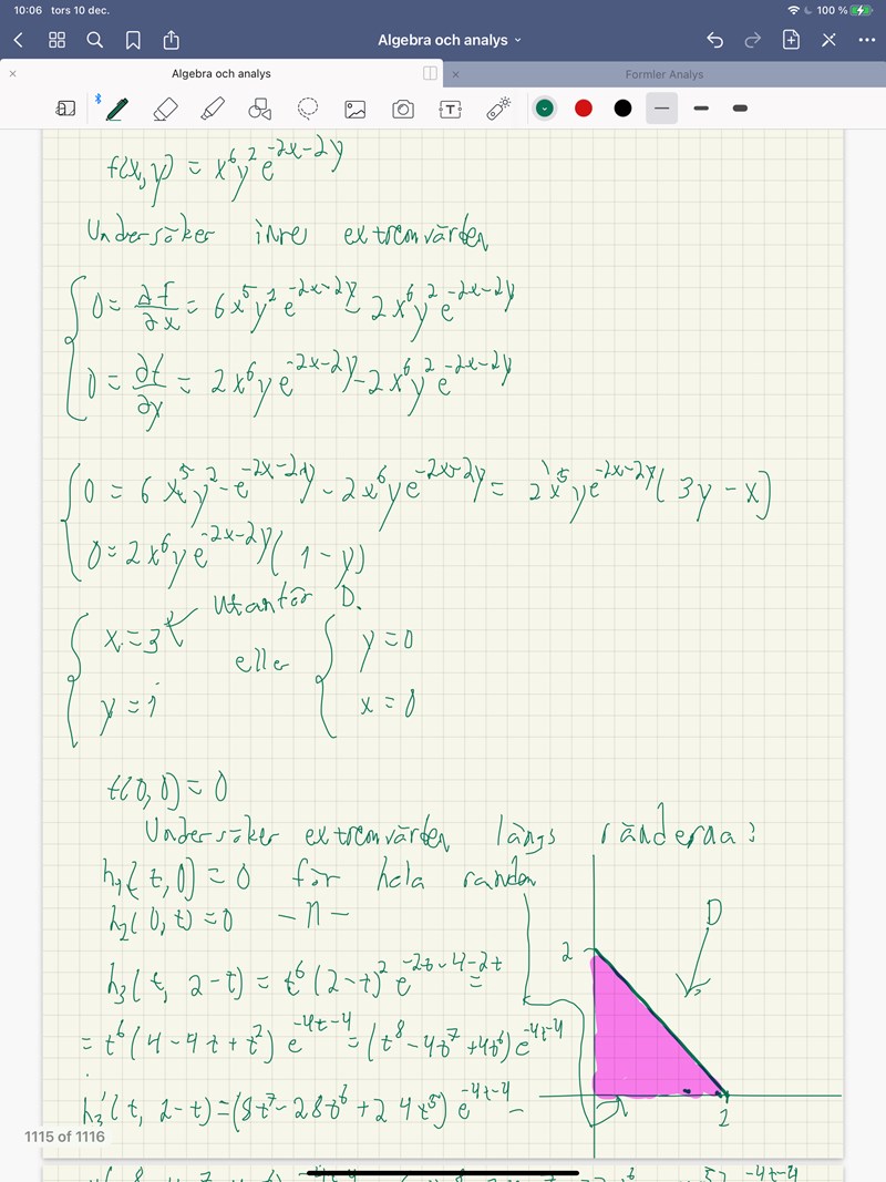 Dubbelkolla exponenten på e i h3, alltså när du sätter in x=t och y=2-t. Borde inte t:na ta ut varandra där?