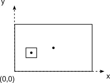 1. x-koordinaten kan väl inte vara noll för båda kvadraterna samtidigt, var du än försöker lägga koordinatsystemet?